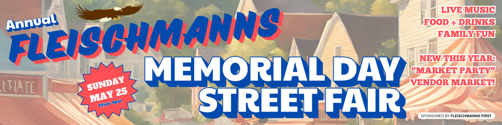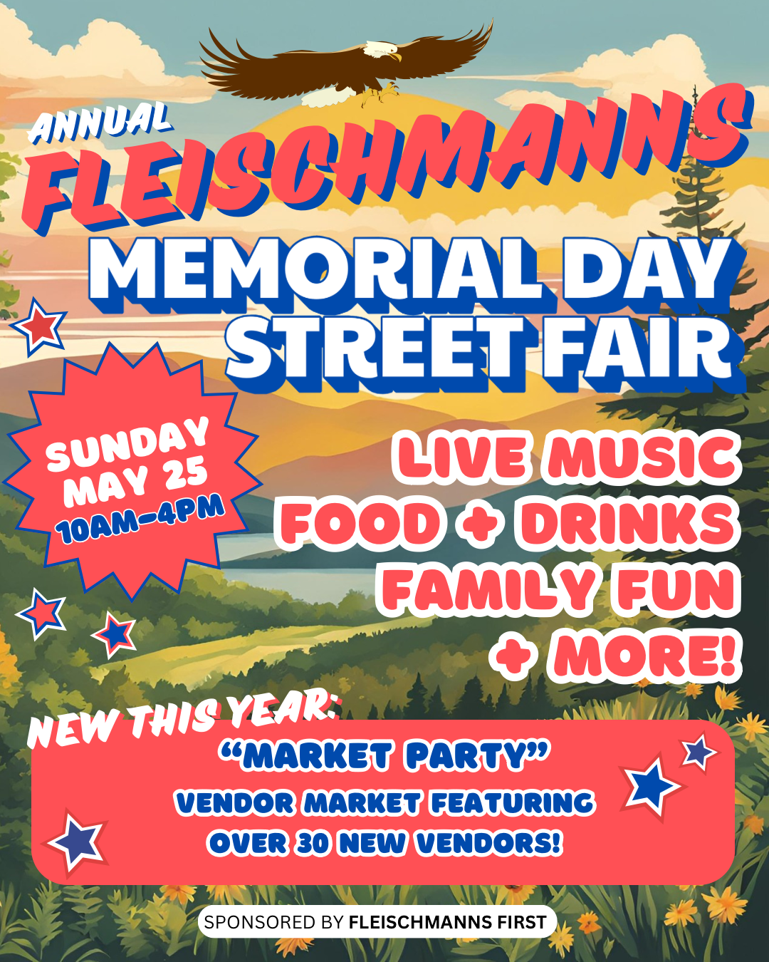 This Memorial Day weekend, Fleischmanns First, Market Party, and Doolittles’ invite you to the Catskills for the Memorial Day Street Fair! Kick off summer in style as you shop a curated selection of local vendors, savor delicious food, and soak up the festive vibes—it's the perfect way to celebrate the holiday weekend!